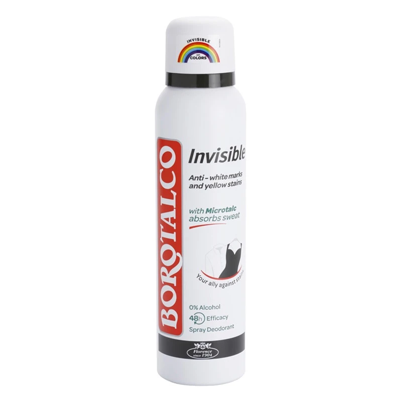 BOROTALCO Invisible – Formula con Microtalco. Formato da 125ml, per nebulizzare il deodorante uniformemente sulla pelle.