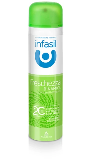 Grazie alla sua formula, arricchita con Molecola 2C e un attivo antibatterico appositamente selezionato, il deodorante Infasil Freschezza Dinamica si attiva nell’arco della giornata per contrastare il cattivo odore solo quando serve.