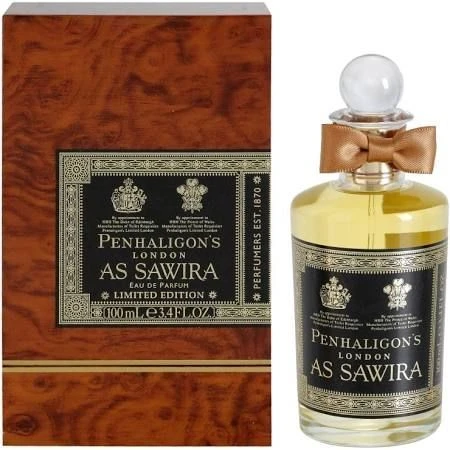 Penhaligon’s Trade Routes Collection As Sawira unisex è un chypré boisè sensuale ed esotico. Prende spunto da Essaouira, primo porto del Marocco nel XIX secolo che sviluppò contatti commerciali con Londra. Contiene note di bergamotto, davana, zafferano, assenzio, rosa, gelsomino, garofano, cardamomo, labdano, ambra, oud, mirra, gaiaco, sandalo, cedro, patchouli.