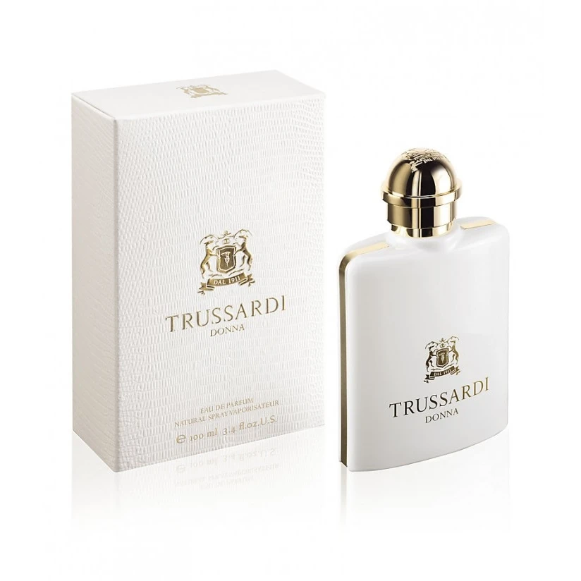 Trussardi Donna è un profumo orientale e floreale che si apre con note di cuore fruttate, come cedro, fiori d’arancio, gelsomino e tè, tra le note di base si avvertono note legnose di giglio, patchouli, legno di cedro, sandalo e vaniglia.